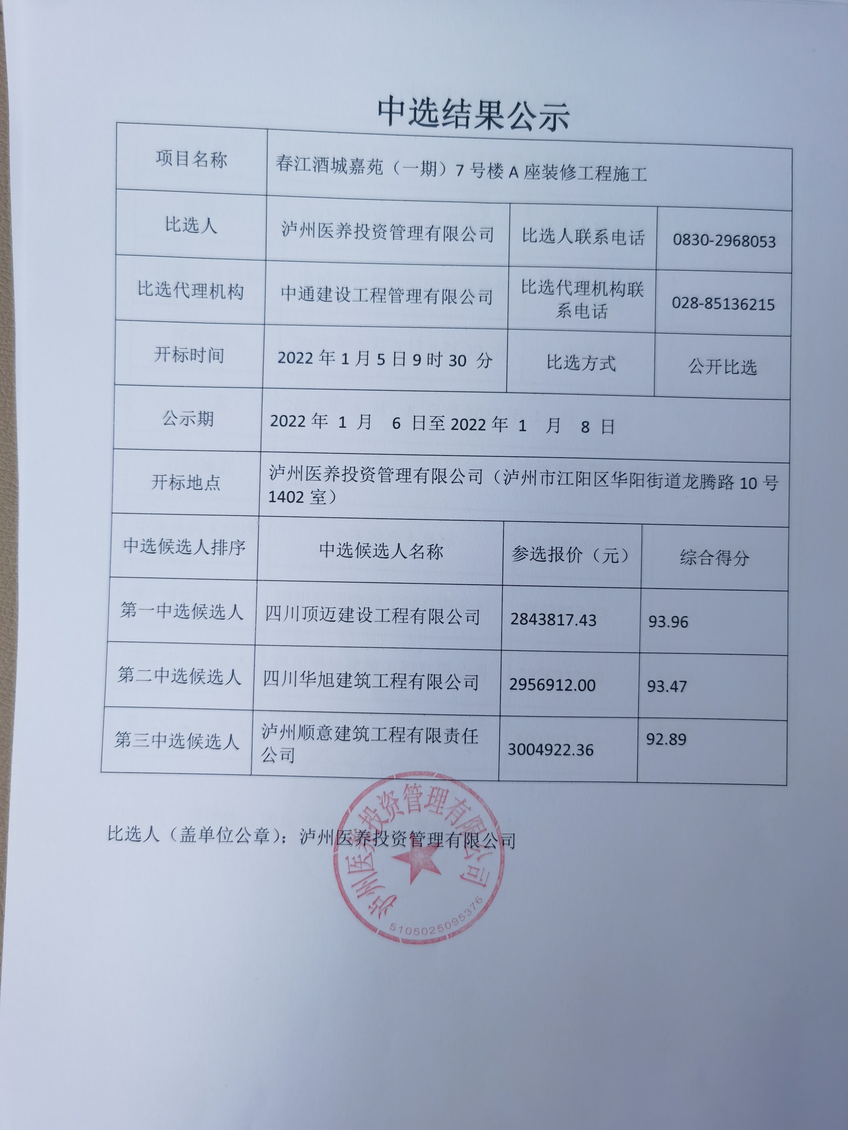 中選結(jié)果公示
