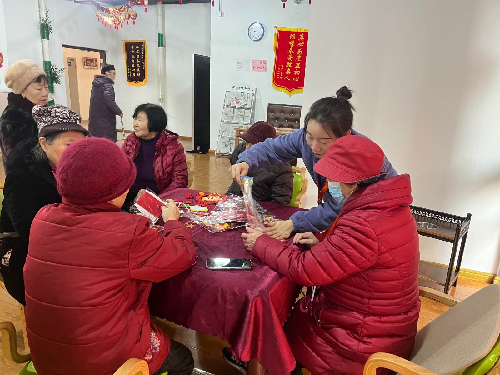節(jié)日“我在崗”、守護(hù)“不打烊”,康樂佳園項目組全體工作人員在萬家團(tuán)圓、歡度新春的喜慶時刻,依舊在工作崗位上奔波忙碌,他們守護(hù)著近40位長者的健康,用實際行動詮釋著“敬業(yè)”二字的豐富內(nèi)涵。他們忙碌的身影,成為春節(jié)期間一道獨(dú)特且溫暖的風(fēng)景線,每位員工舍小家為大家,為留守在園內(nèi)的長者們服務(wù)。廚師為長者們制作健康餐食,護(hù)士為長者們監(jiān)測血糖血壓,護(hù)理人員為長者們帶來優(yōu)質(zhì)服務(wù),陪伴他們聊家常、看春晚、吃湯圓,為長者們的身體健康保駕護(hù)航。