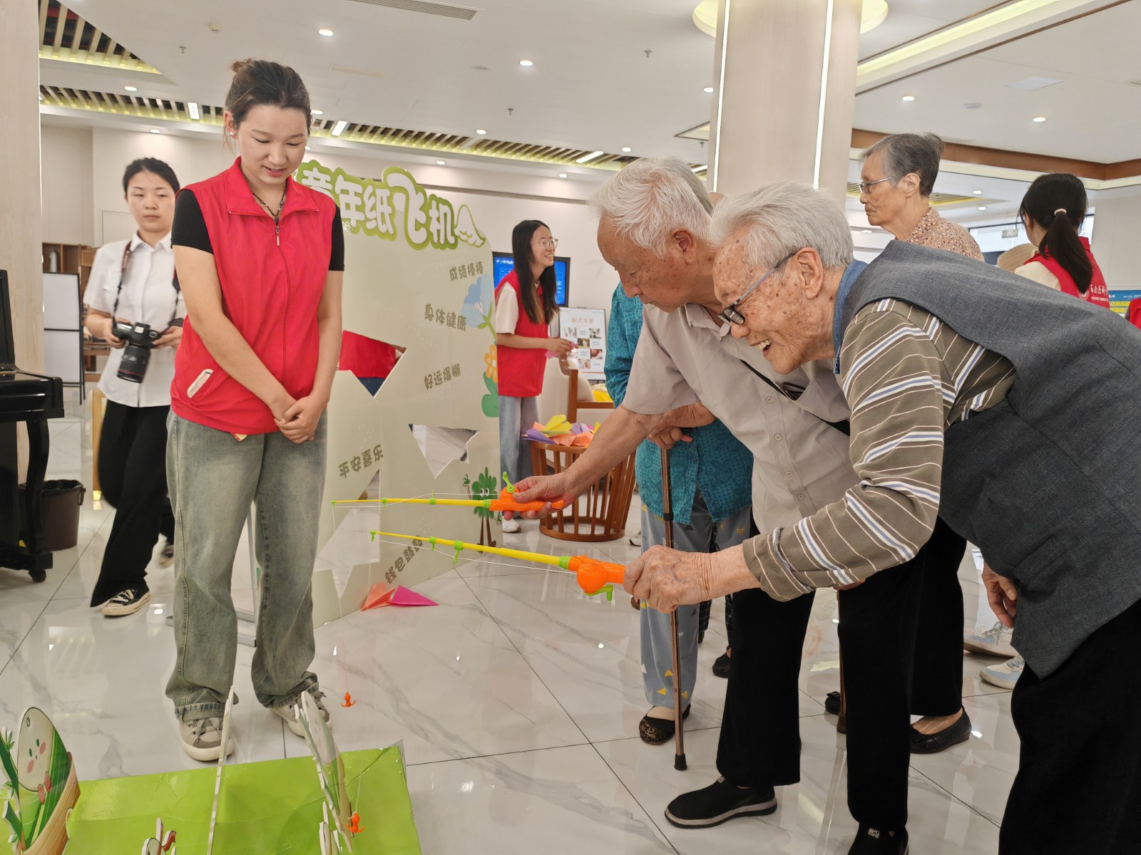 2024年6月6日下午,西南醫(yī)科大學(xué)青年志愿者協(xié)會(huì)與春江酒城嘉苑養(yǎng)老社區(qū)共建“時(shí)光隧道”志愿服務(wù)品牌發(fā)布儀式暨第一季“穿越時(shí)空 心靈碰撞”志愿服務(wù)活動(dòng),在春江酒城嘉苑養(yǎng)老社區(qū)隆重舉行。春江酒城嘉苑養(yǎng)老社區(qū)離退休黨支部書(shū)記游瑞林,團(tuán)市委學(xué)少部副部長(zhǎng)劉星伶,西南醫(yī)科大學(xué)團(tuán)委副書(shū)記楊娜,西南醫(yī)投集團(tuán)黨委委員、副總經(jīng)理武瑛,西南醫(yī)投集團(tuán)黨委委員、紀(jì)委書(shū)記、工會(huì)主席劉興林,醫(yī)養(yǎng)投資公司執(zhí)行董事、總經(jīng)理張朝梟出席活動(dòng)。春江酒城嘉苑養(yǎng)老社區(qū)離退休黨支部全體委員、入住的老黨員代表、西南醫(yī)科大學(xué)青年學(xué)生等共計(jì)60余人參加。