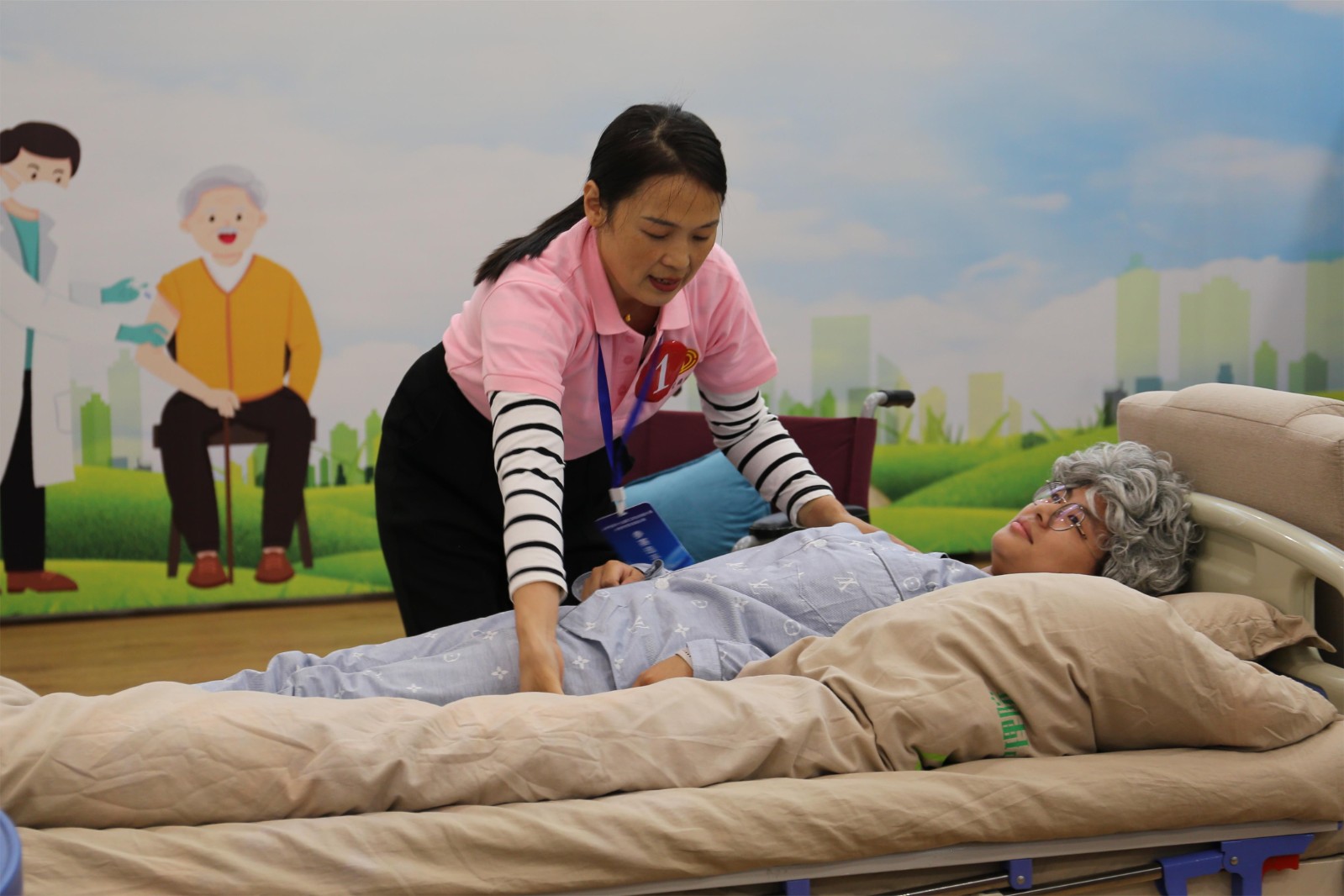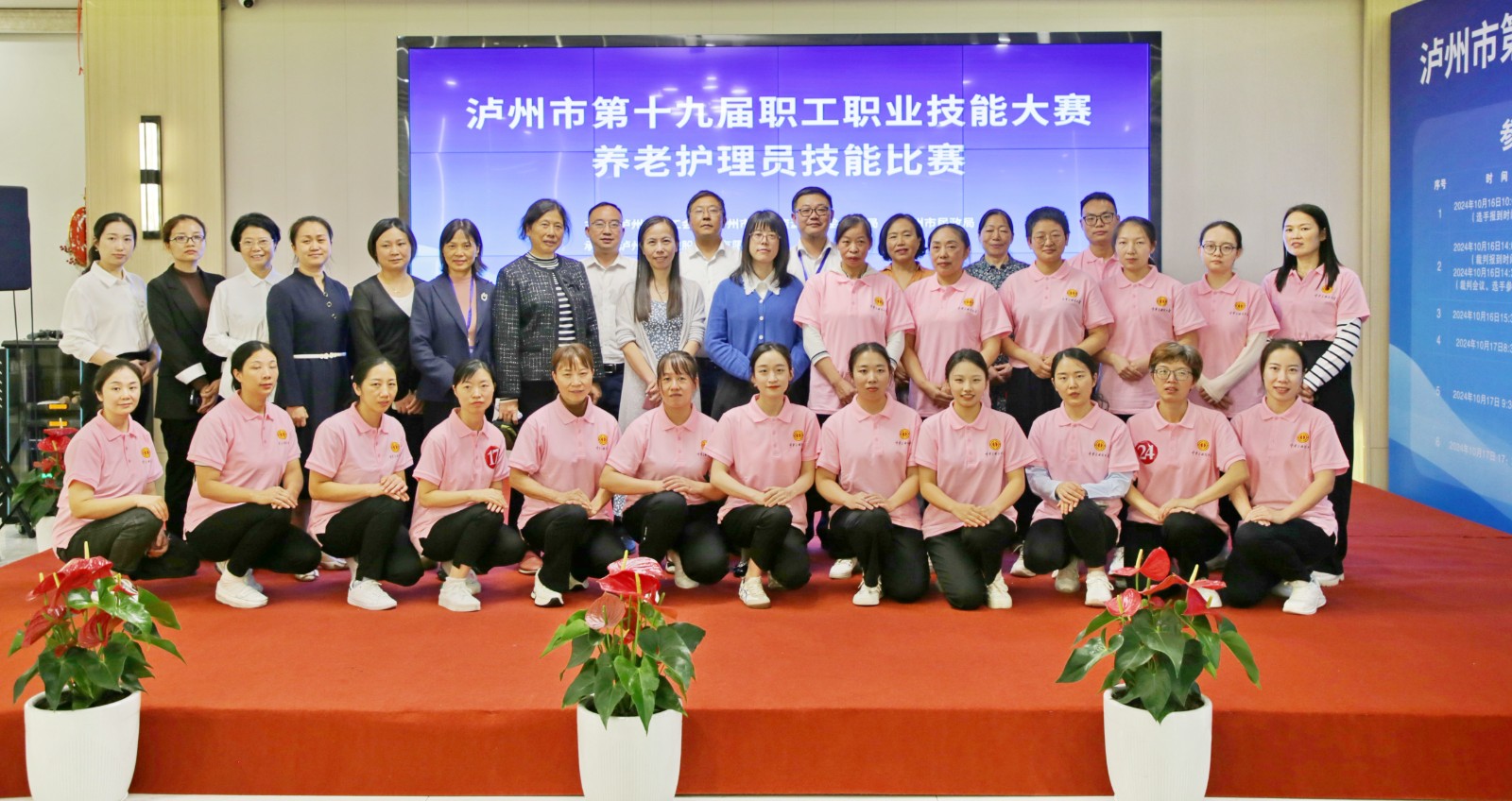 為進(jìn)一步提高我市養(yǎng)老服務(wù)水平,加強(qiáng)養(yǎng)老護(hù)理人才隊(duì)伍建設(shè),展現(xiàn)養(yǎng)老護(hù)理員的職業(yè)風(fēng)采與專業(yè)技能,10月16日—17日,瀘州市第十九屆職工職業(yè)技能大賽養(yǎng)老護(hù)理員技能比賽在春江酒城嘉苑順利舉辦。瀘州市總工會(huì)黨組成員、副主席鄭智,發(fā)展控股集團(tuán)黨委副書記、紀(jì)委書記、工會(huì)主席鄺利,西南醫(yī)投集團(tuán)黨委副書記、總經(jīng)理?xiàng)詈纾h委委員、常務(wù)副總經(jīng)理武瑛,市總工會(huì)、市人社局、市民政局相關(guān)負(fù)責(zé)同志蒞臨現(xiàn)場指導(dǎo)。